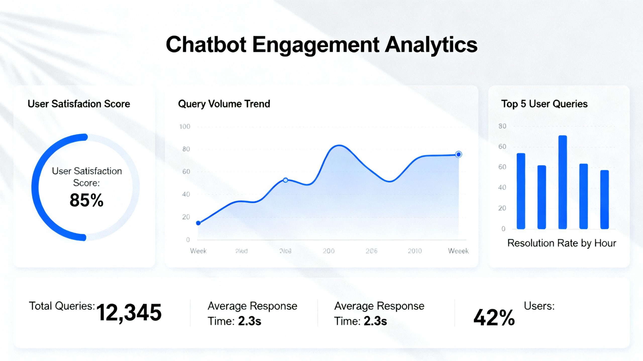 Track queries, user engagement, satisfaction, and improvement metrics.